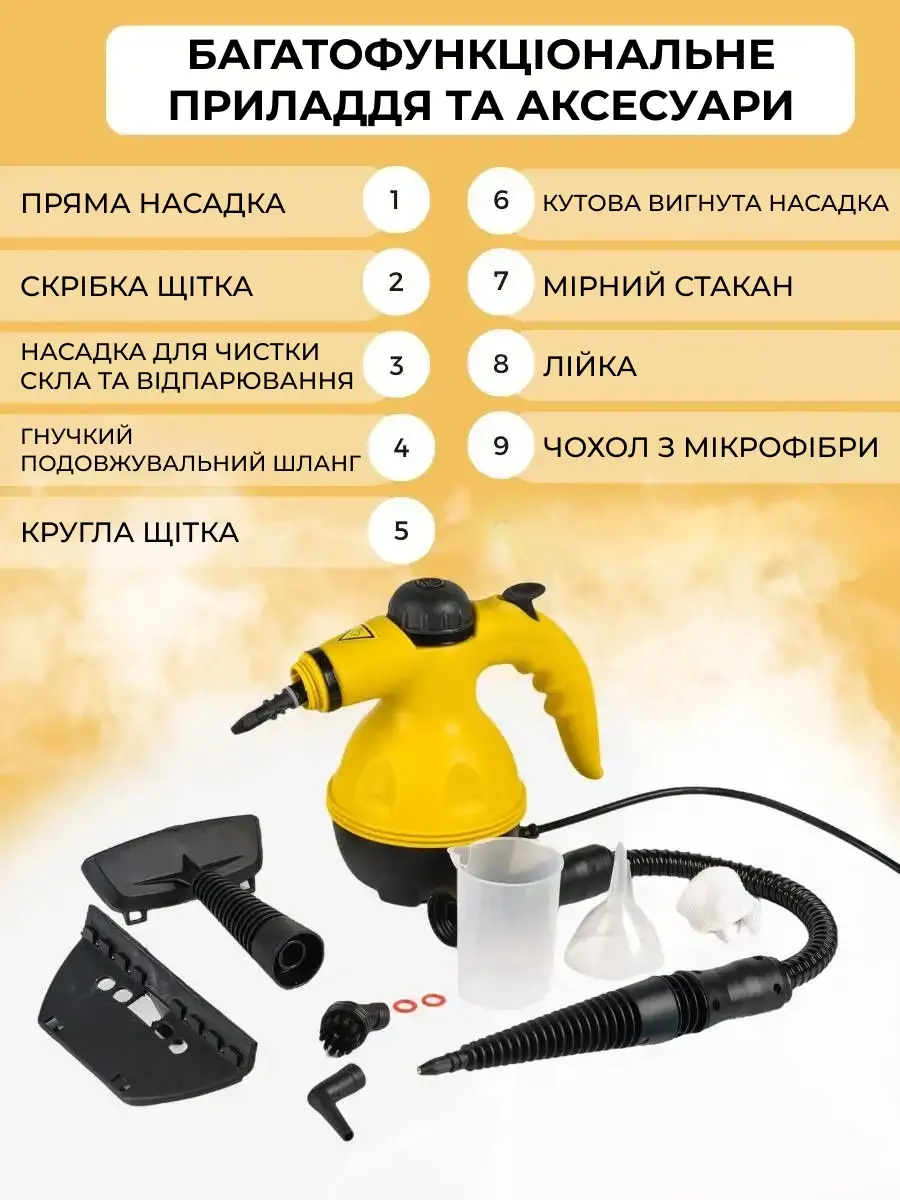 Представляємо вам інноваційний Пароочисник 6 в 1, який стане вашим незамінним помічником у прибиранні. Цей унікальний пристрій поєднує в собі шість різних насадок, щоб забезпечити максимальну ефективність та зручність при чистці будь-яких поверхонь.